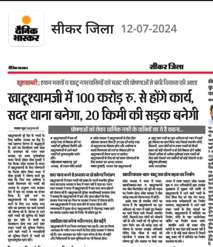 Dainik Bhaskar – Sikar District, 12 July 2024